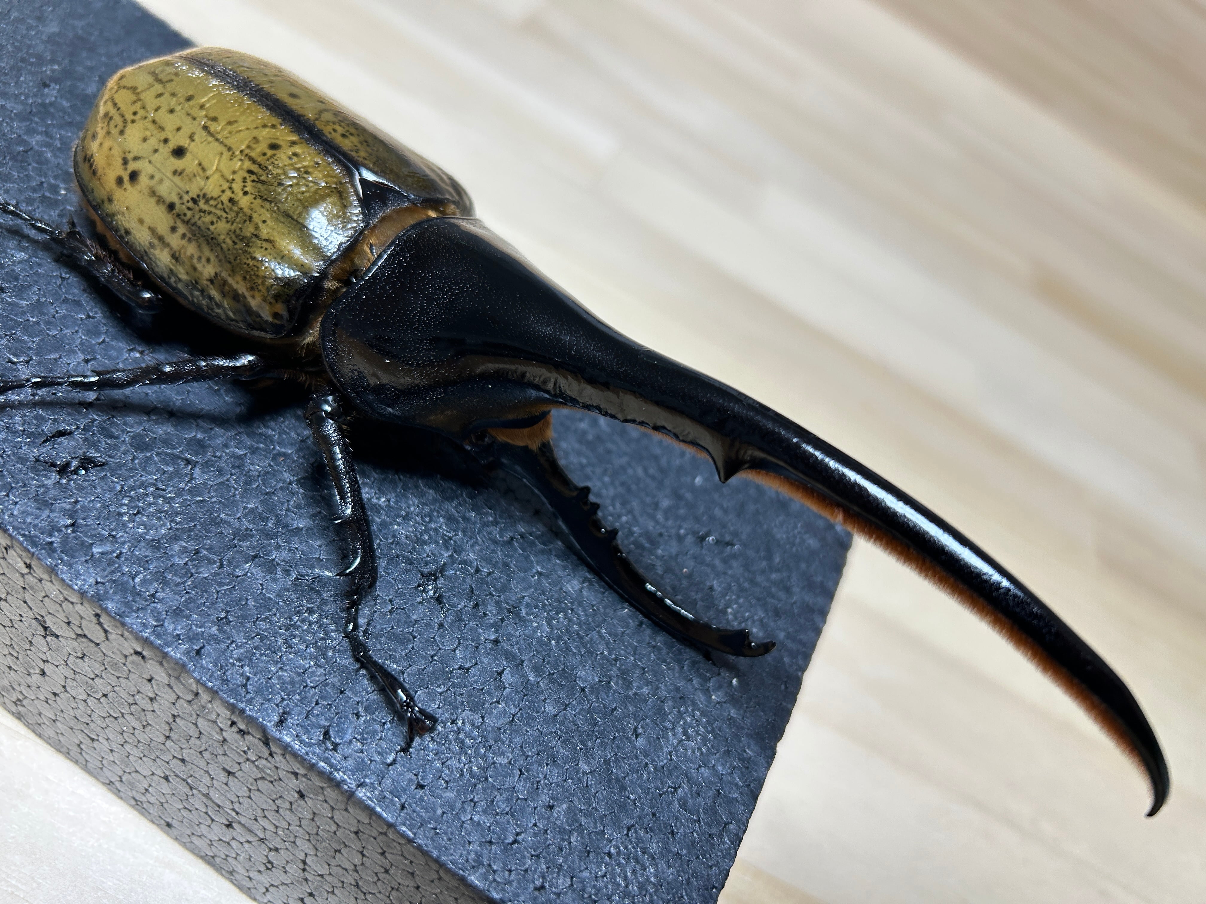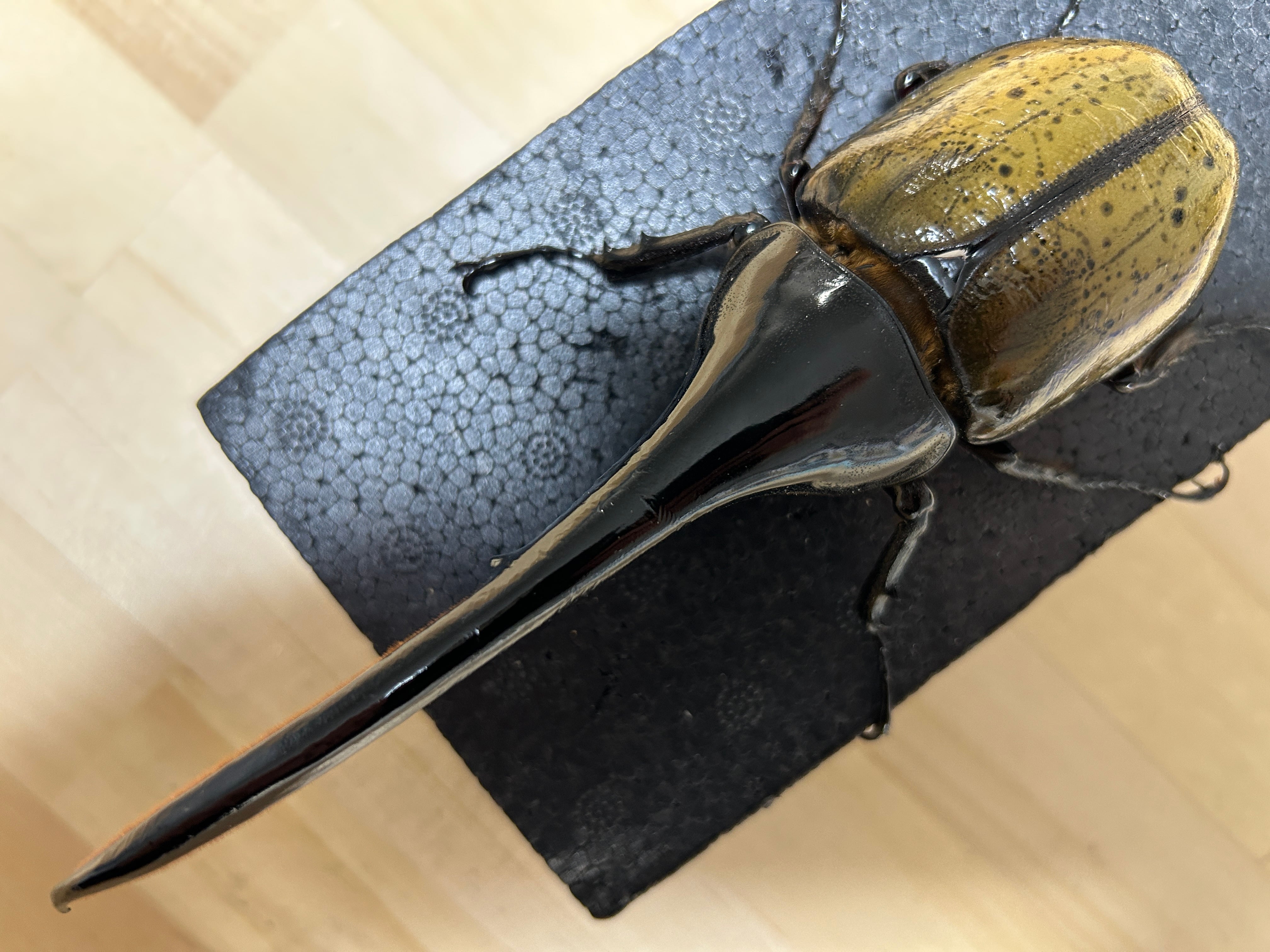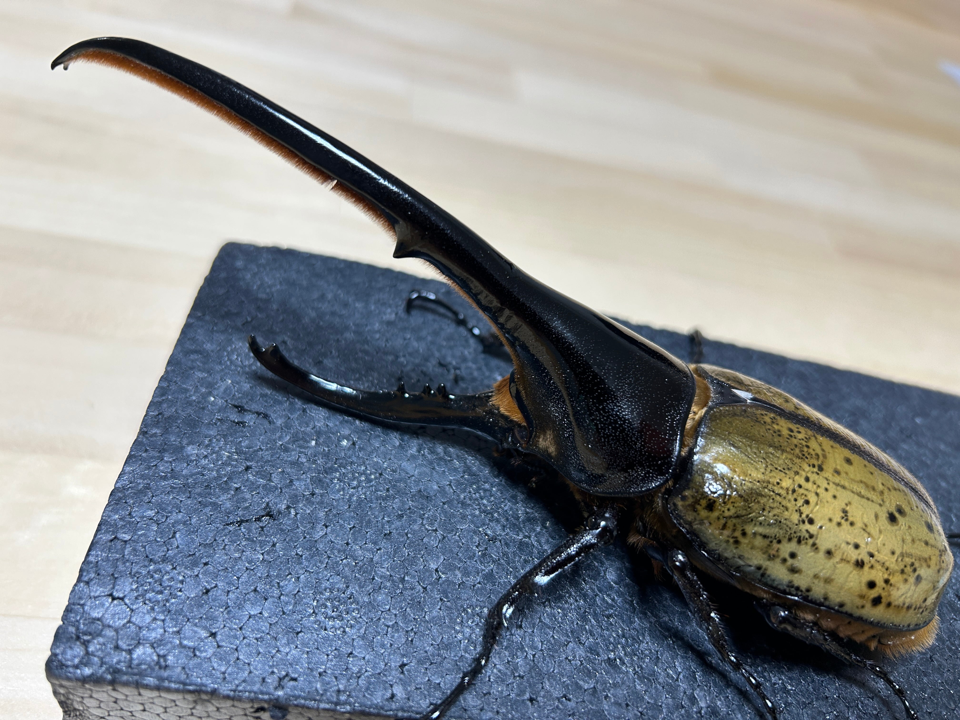 胸角細く、あまりカッコよくはない個体ですが、